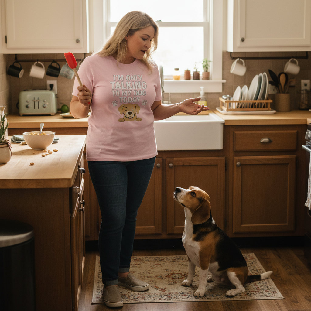 Let everyone know where your priorities lie with our “I’m Only Talking to My Dog Today” tee. Featuring bold lettering, cute paw prints, and an adorable dog graphic, this shirt is perfect for dog lovers who’d rather spend their day with their furry best friend.